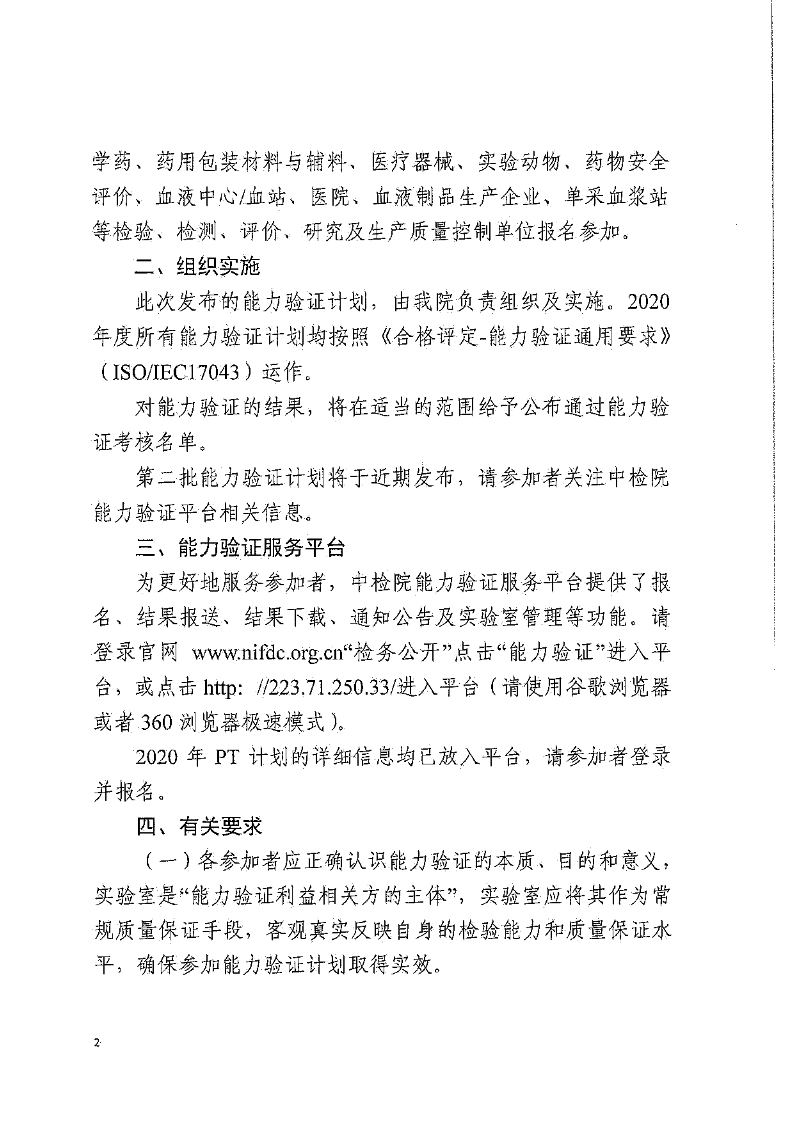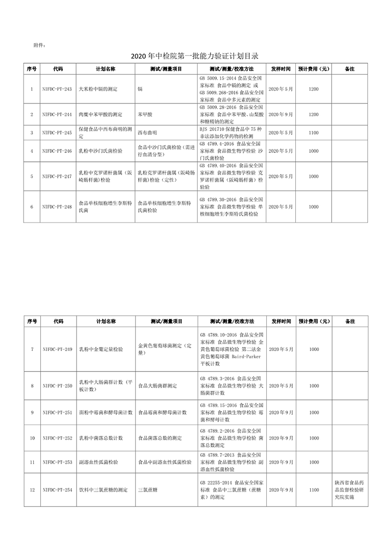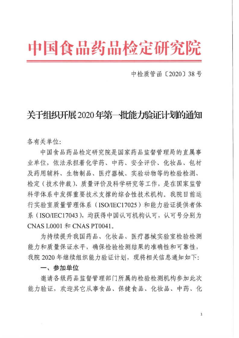 關(guān)于組織開(kāi)展2020年第一批能力驗證計劃的通知